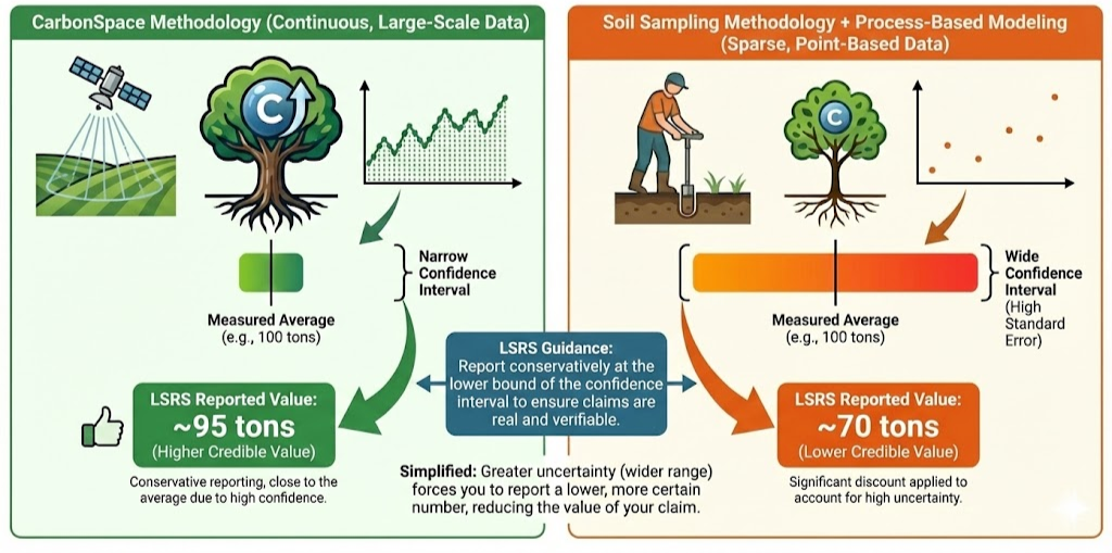 Infrequent, inaccurate measurements lead to wide confidence intervals that make it difficult to quantify actual carbon removals.
