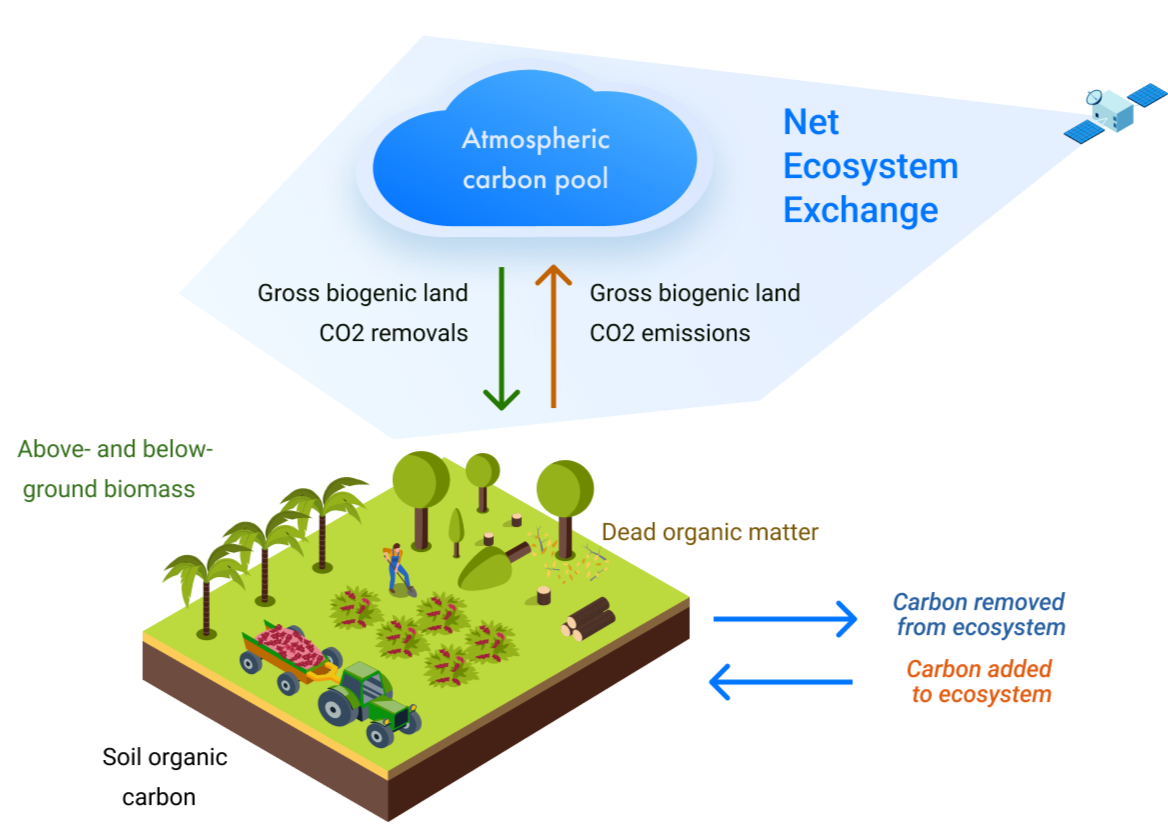 Measures Net Ecosystem Exchange — the balance between gross biogenic CO₂ removals and emissions.